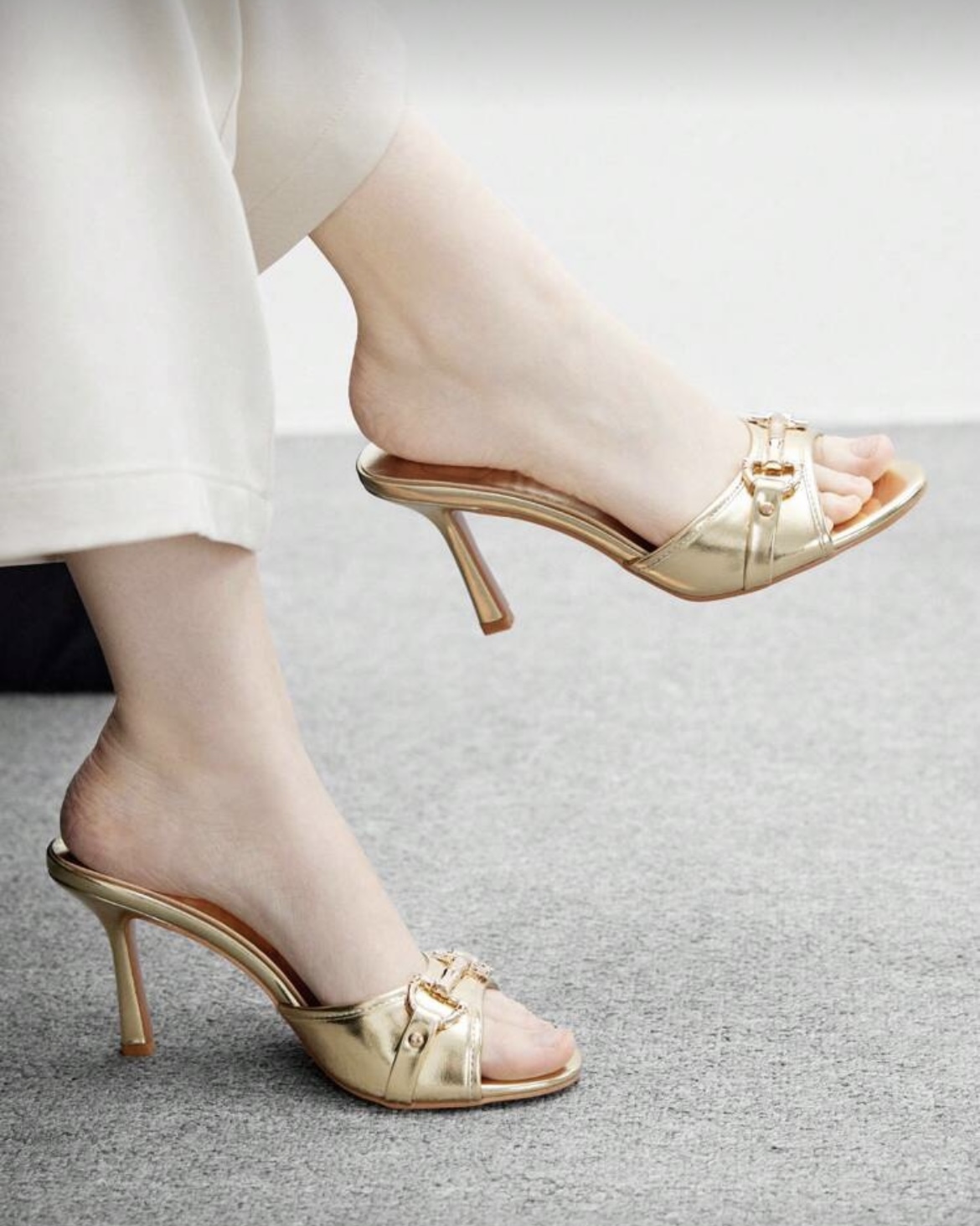 No dejes pasar la oportunidad de incorporar esta joya a tu colección. Son el calzado elegante que define un look, una inversión en estilo que te hará sentir poderosa y sofisticada en cualquier ocasión. Haz tuyos estos mules dorados de tacón alto y camina con la confianza que solo un gran par de zapatos puede dar.