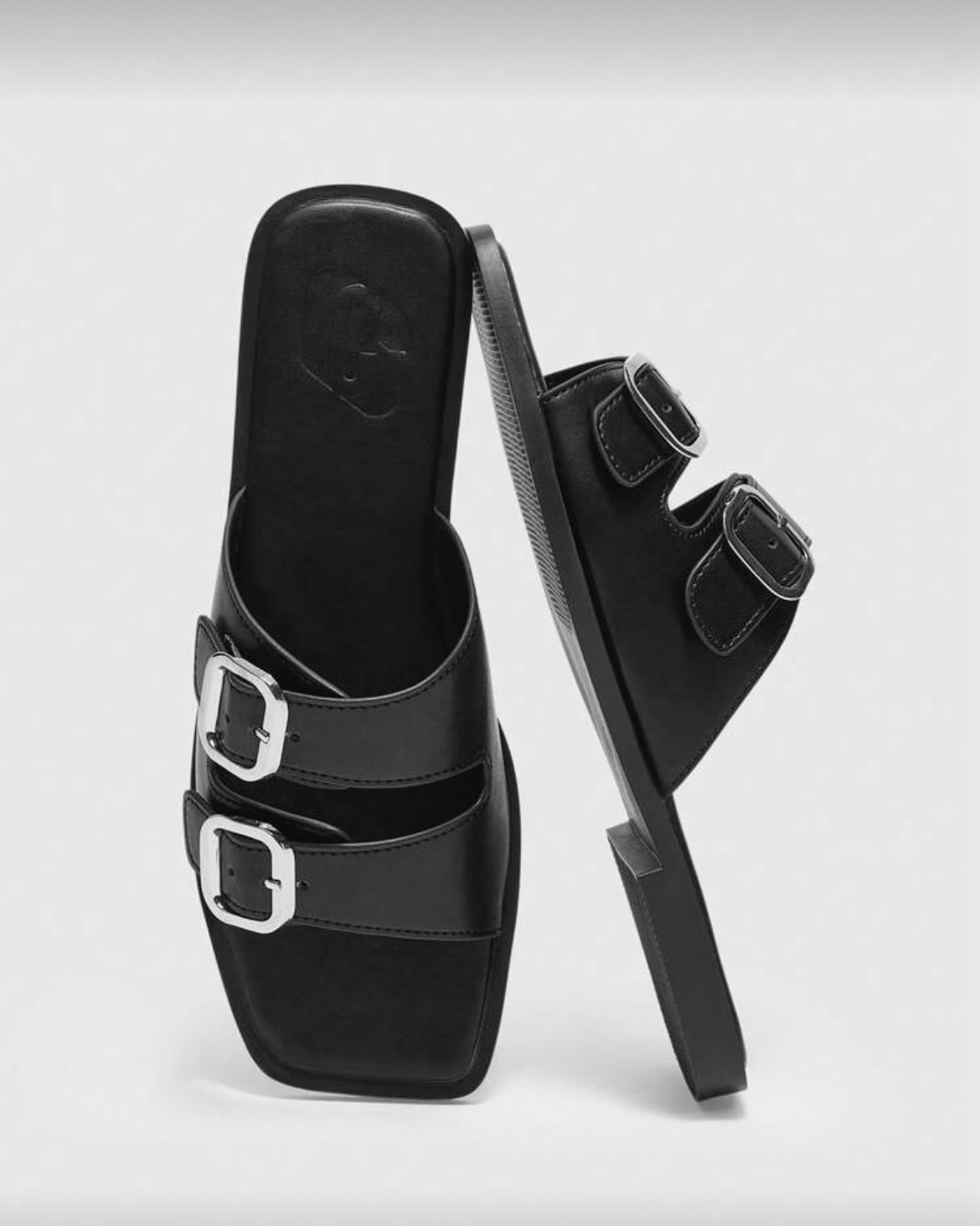 Nuestras sandalias negras doble hebilla son la personificación del effortless chic y el confort urbano. Este diseño toma la comodidad clásica de una sandalia slide y la eleva con detalles de tendencia, convirtiéndolas en el calzado de verano imprescindible para la mujer moderna. Su estética, que equilibra a la perfección lo minimalista con lo utilitario, las hace increíblemente versátiles y fáciles de integrar en cualquier look, desde el más casual hasta el más pulido.