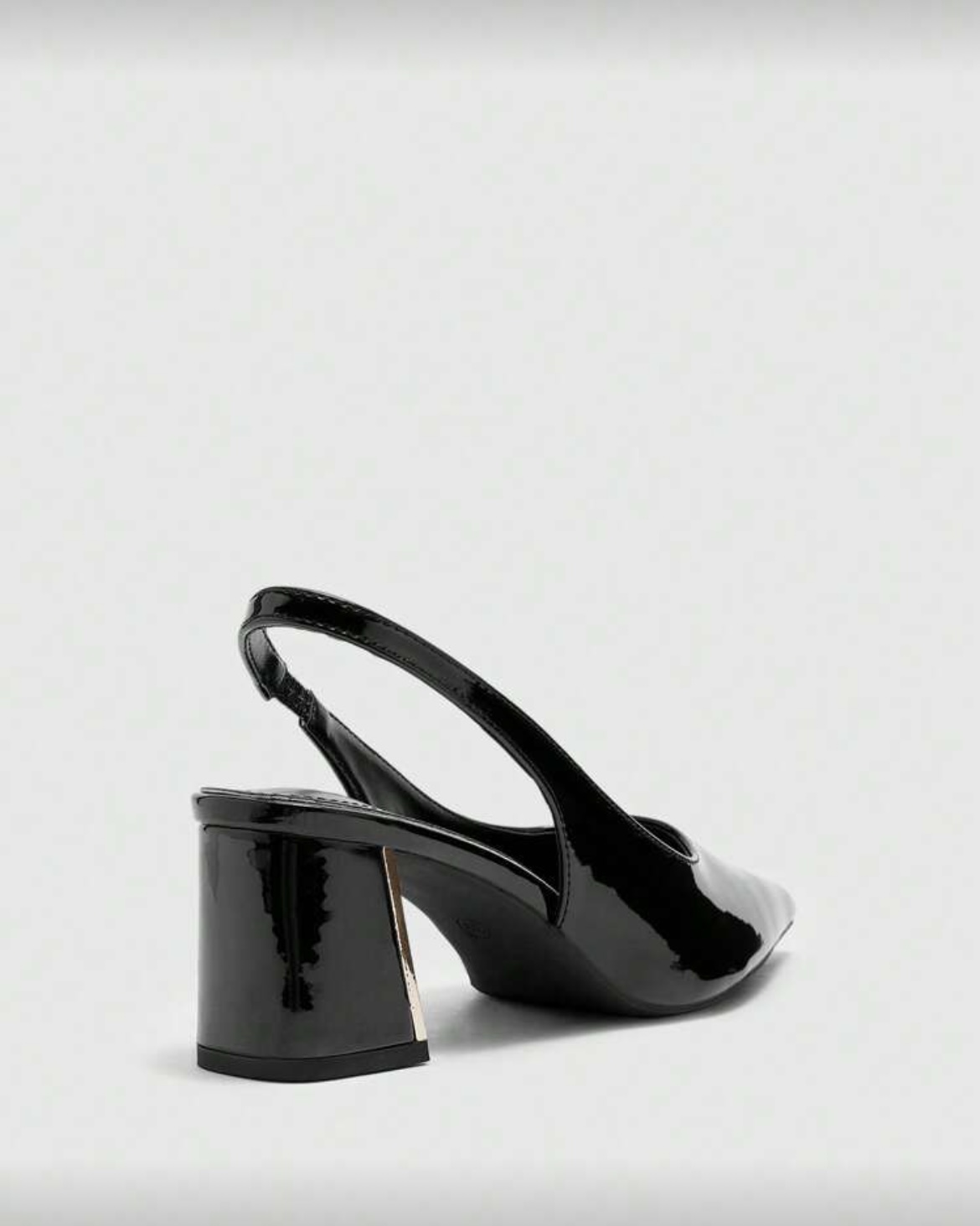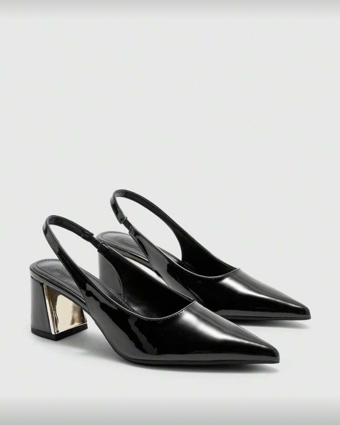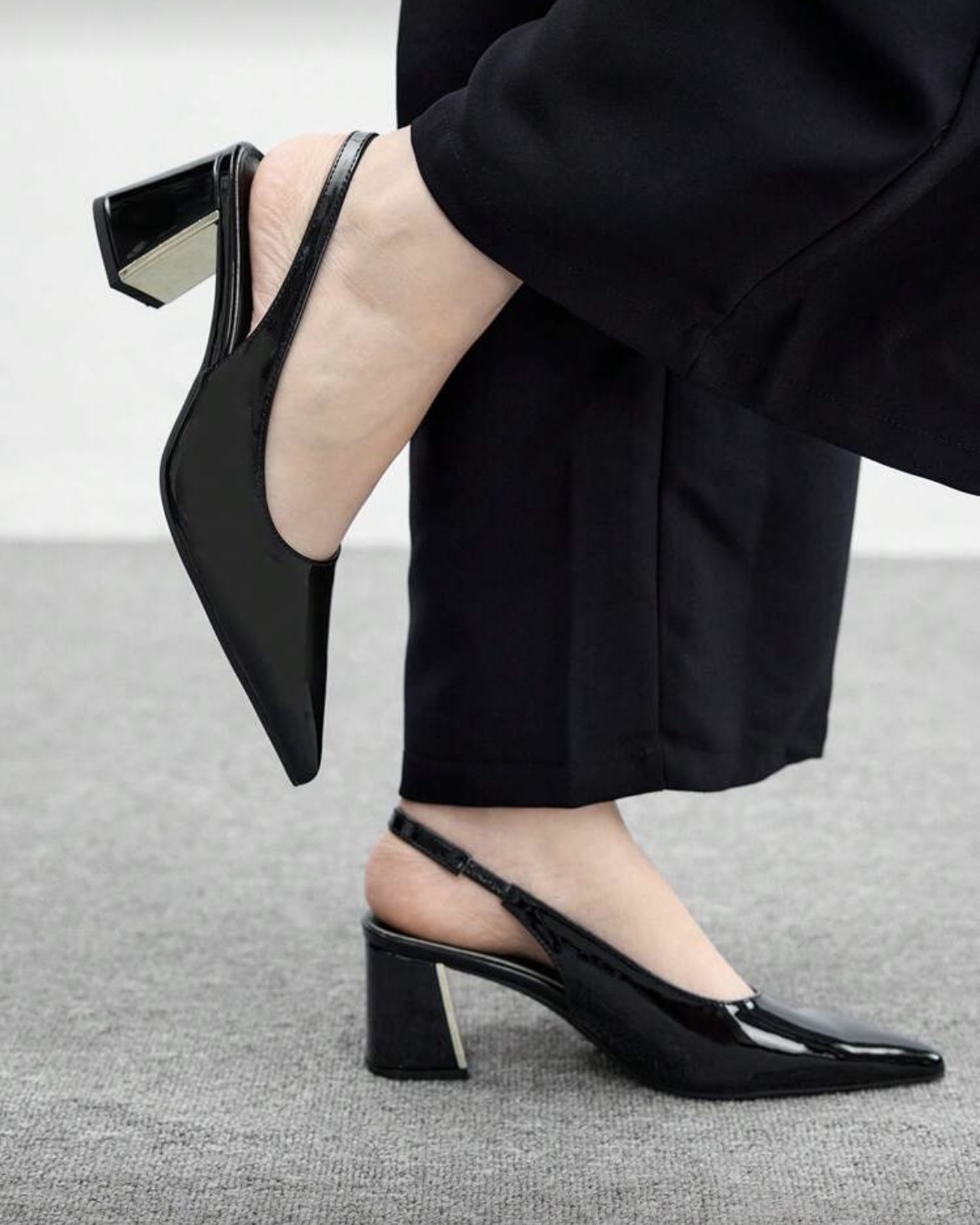 Entendemos que la verdadera elegancia reside en la confianza que otorga el confort. El elemento clave que diferencia a este modelo de otros slingbacks de charol es su tacón bloque de altura media. A diferencia del tacón de aguja, que a menudo compromete la estabilidad, nuestro Slingback Negro Tacón Bloque es robusto, moderno y de base ancha.